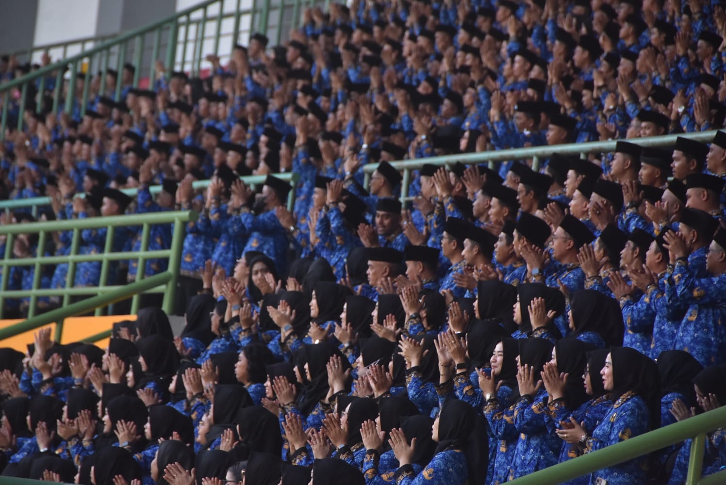 “Jam 08.17 WIB, 2 Juli 2025 kalian secara resmi sah menjadi aparatur sipil negara di lingkungan Pemerintah Kota Bekasi,” ujar Tri.