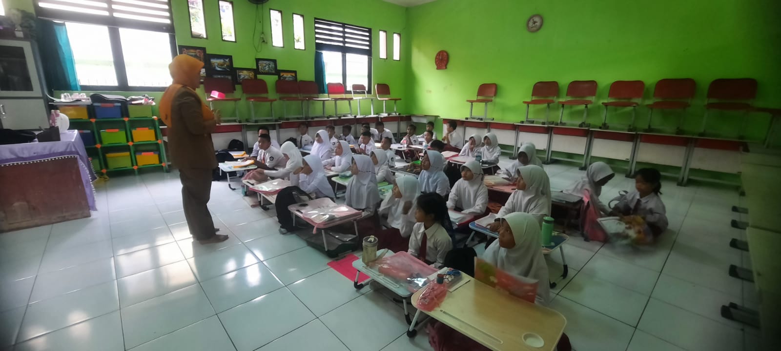 Sejumlah siswa, khususnya di kelas 1 dan 3, terpaksa belajar dengan duduk lesehan di lantai akibat kekurangan kursi dan meja.