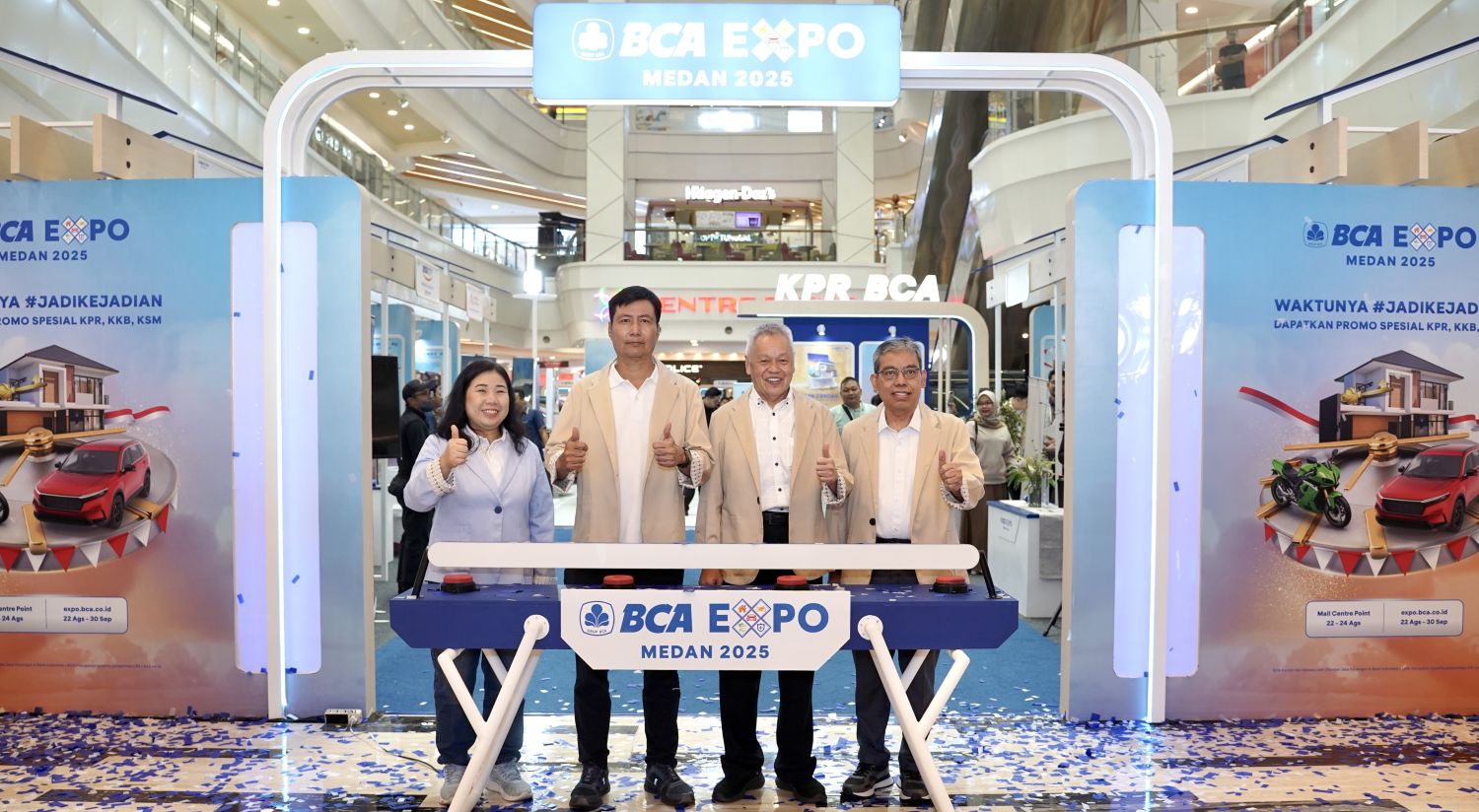 Direktur BCA Rudy Susanto didampingi Kakanwil V BCA Iwan Santoso Narto, Senior VP Consumer Loan BCA Ria Aryani Rachman dan Direktur BCA Finance Liston Nainggolan membuka pelaksanaan BCA Expo Medan 2025 secara resmi pada Jumat (22/8). Selain di Medan, BCA Juga melaksanakan rangkaian gelaran BCA Expo 2025 offline di Jakarta, Bali, Surabaya, Semarang, Malang, dan Bandung. Sementara itu, nasabah BCA di seluruh Indonesia juga dapat mengikuti BCA Expo 2025 secara online pada 22 Agustus – 30 September 2025 lewat laman resmi www.expo.bca.co.id.