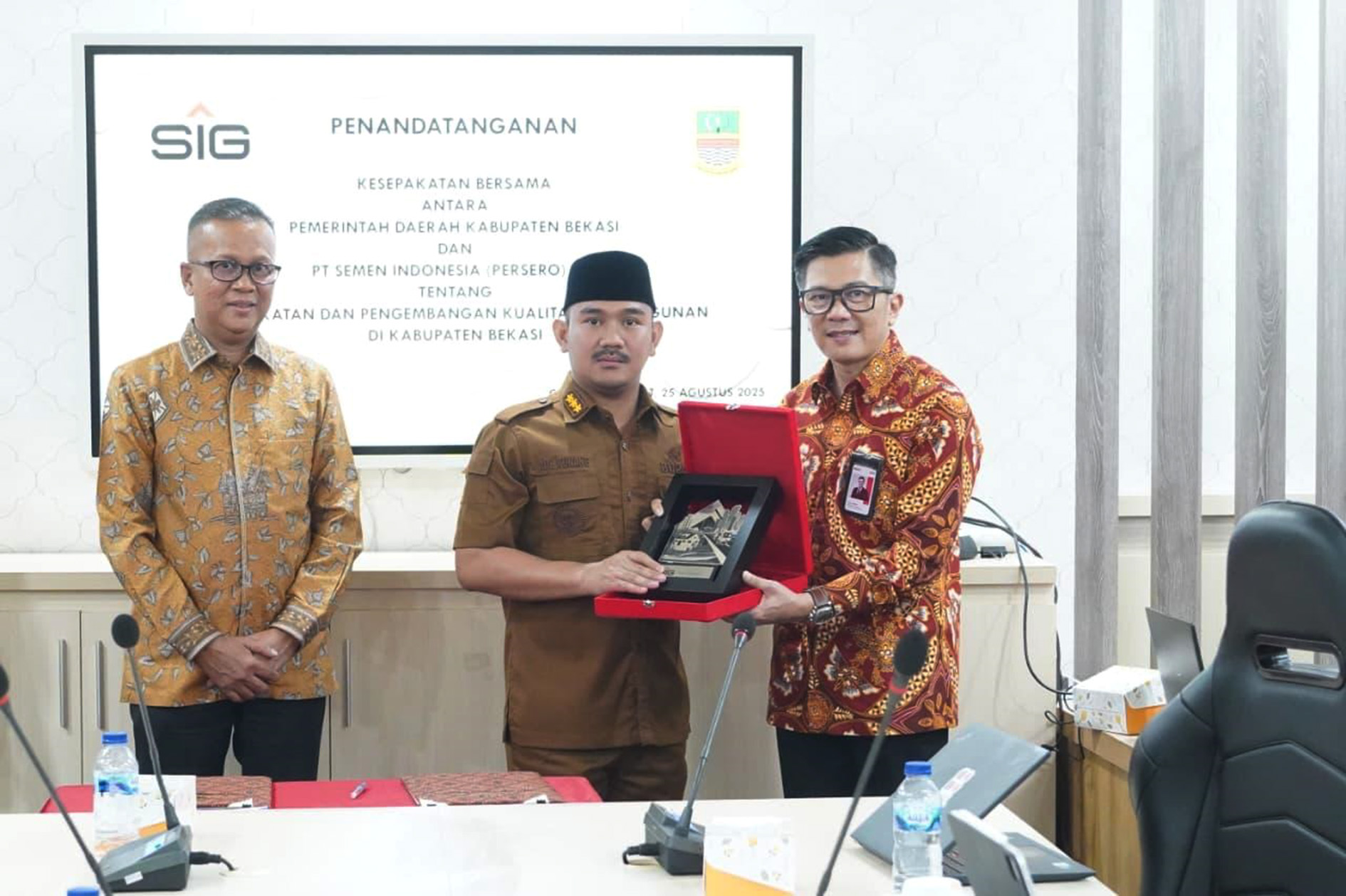 Kerja sama tersebut ditandai dengan penandatanganan nota kesepahaman (MoU) antara Bupati Bekasi, Ade Kuswara Kunang, dan Direktur Sales & Marketing PT SIG, Dicky Saelan, di Kantor Bupati Bekasi, Komplek Pemkab Cikarang Pusat, Senin (25/8).