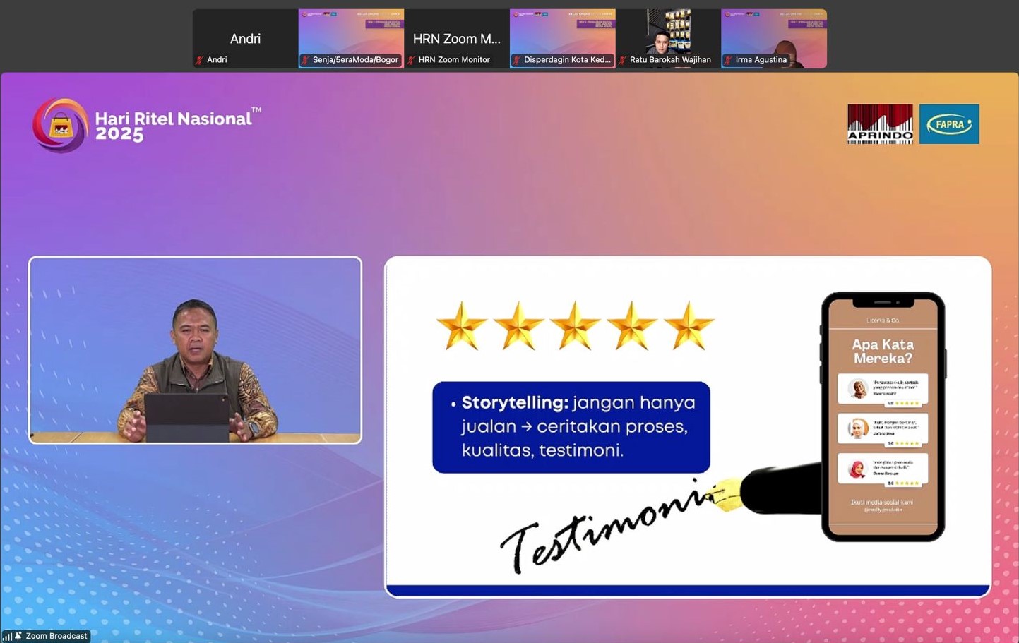 “Stock opname, service level, apakah UMKM sudah siap? Jangan sampai sudah masuk tapi kemudian terbiarkan. Ini harus diukur. Fokus pelan-pelan sesuai kemampuan, lalu upscale dilakukan setelah berproses,” tegas Hudi dalam Kelas UMKM Online Series ke-III Hari Ritel Nasional 2025 yang digelar Asosiasi Pengusaha Ritel Indonesia (Aprindo) bertema Pemasaran Digital & Analisis Media Sosial, pada Rabu (27/8), secara hybrid di Hypermart Head Office, Karawaci, Tangerang.