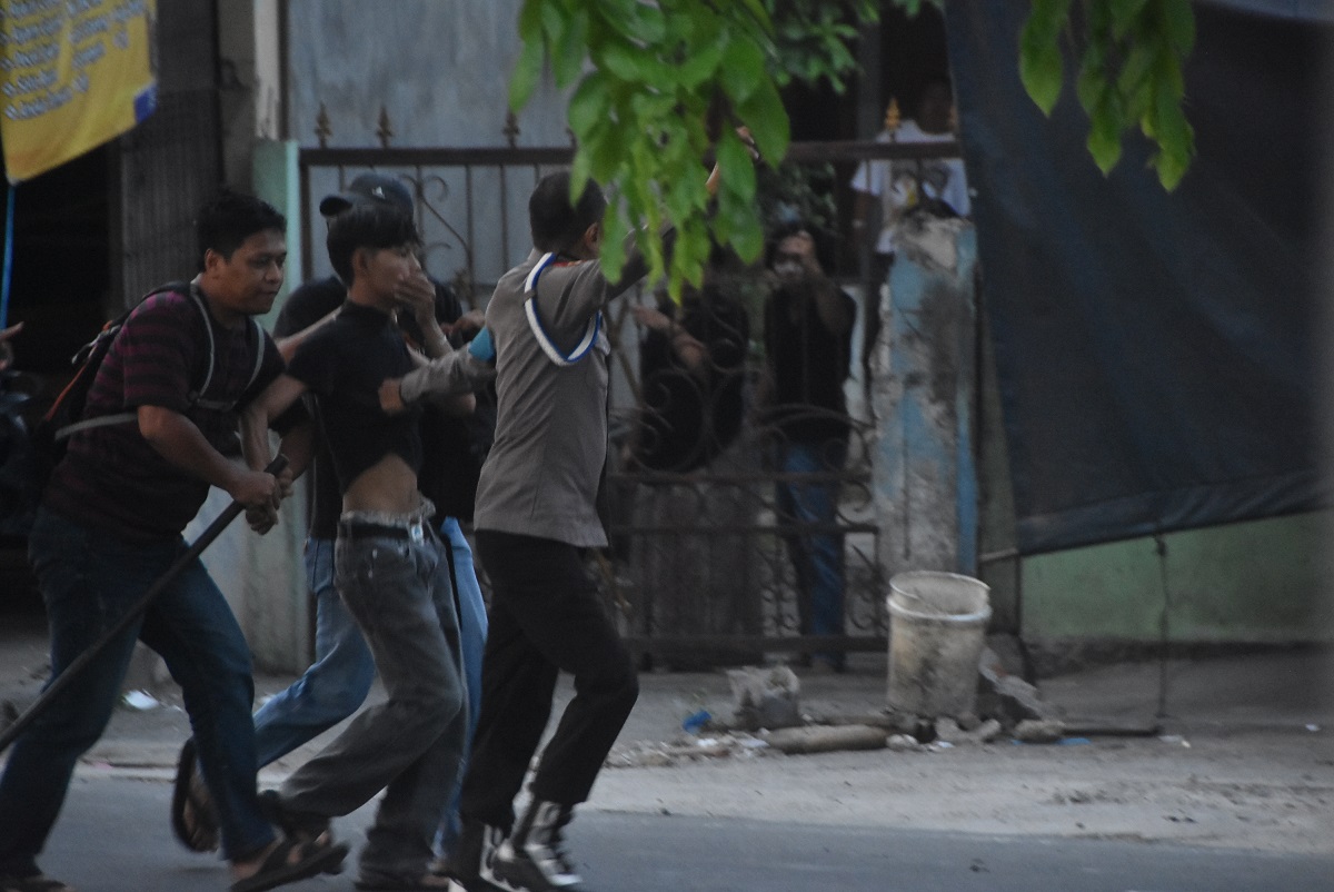 Pascainsiden, polisi melakukan penyisiran di sejumlah titik sekitar lokasi dan mengamankan puluhan orang yang terlibat. Seluruhnya kini menjalani pemeriksaan di Polres Metro Bekasi Kota. (rez)
