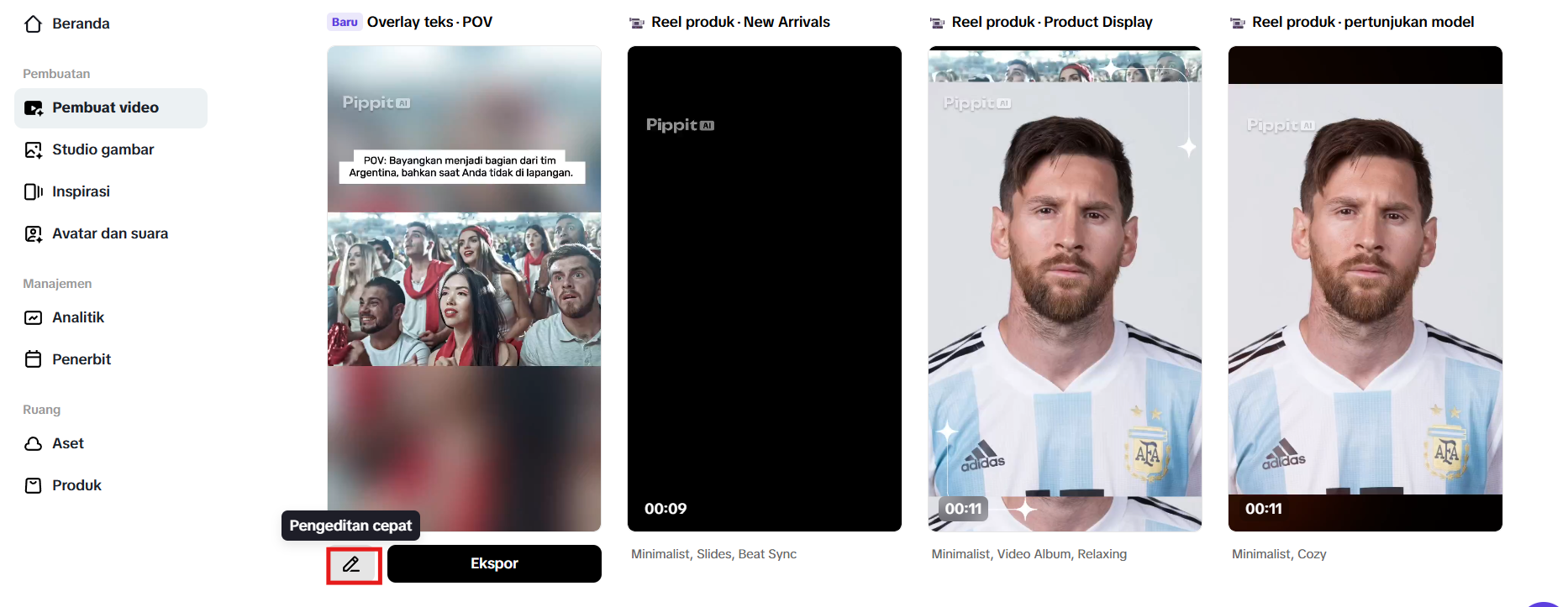 Saatnya mengecek hasil yang sudah dibuatkan untukmu. Pilih opsi video yang menurutmu paling pas dari daftar hasil. Kalau hanya ingin ubahan sederhana, gunakan “Quick Edit” untuk mengatur gaya caption, mengutak-atik naskah, atau mengganti suara narasi.
