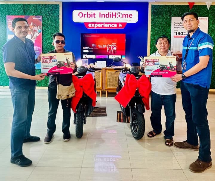 RADARBEKASI.ID, BEKASI – Undi – Undi Hepi merupakan program undian Telkomsel POIN yang ditujukan untuk seluruh pelanggan SIMPATI, Telkomsel Halo & IndiHome. Pelanggan dapat menukar Telkomsel POIN dengan kupon undian untuk mendapatkan hadiah pilihan. Program ini merupakan wujud nyata komitmen Telkomsel yang tak hanya berfokus dalam menghadirkan berbagai dukungan teknologi terdepan melalui penguatan infrastruktur jaringan sebagai backbone industri digital, melainkan juga selalu berkomitmen memberikan apresiasi kepada para pelanggan setia Telkomsel. Setiap periodenya Telkomsel selalu mengundi pelanggan beruntung yang telah menukarkan Telkomsel POIN. Pada periode kali ini 2 pelanggan beruntung asal Bekasi yang berhasil membawa pulang masing-masing 1 Unit Motor Honda Genio CBS, Sujadi Purwanto dan Yogie Izhar Syafawi yang merupakan pelanggan setia yang telah menjadi pengguna Telkomsel lebih dari 4 tahun lamanya.