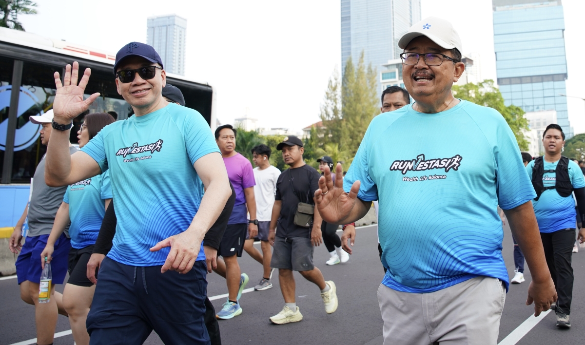Pembukaan virtual race Runvestasi 2025 dihadiri oleh jajaran direksi BCA, pegiat lari Melanie Putria, komunitas pegiat lari, dan masyarakat umum yang mengikuti kegiatan car free day (CFD) di Jakarta (2/11).