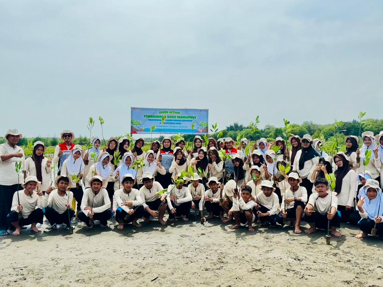 Usai edukasi, seluruh peserta turun langsung menanam 5.000 bibit mangrove di area seluas 5 hektar, dilanjutkan dengan aksi bersih pantai bersama. Bagi para siswa SMPN 1 Tirtajaya, pengalaman ini bukan hanya kegiatan sekolah, tetapi pelajaran hidup tentang merawat bumi.