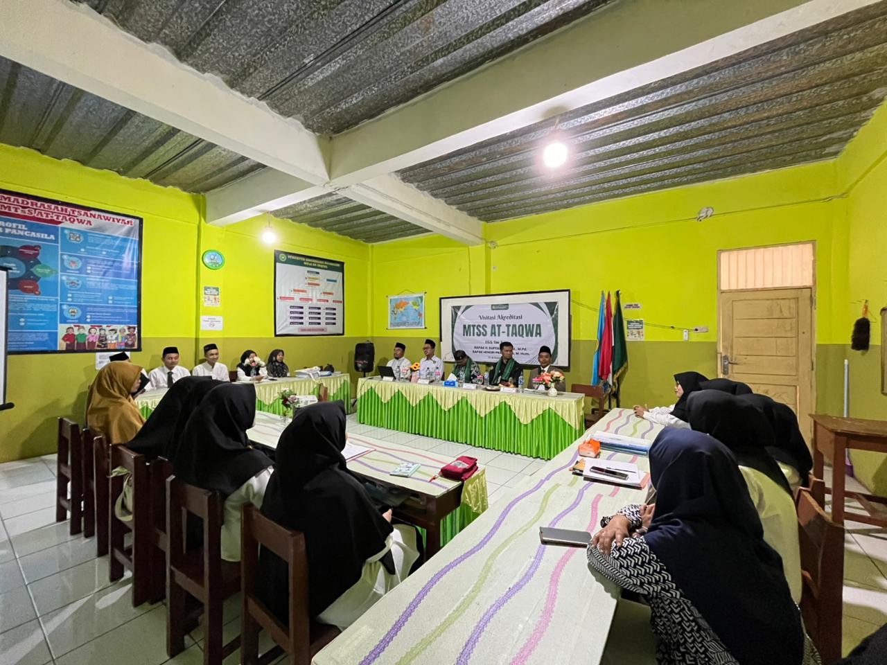 RAPAT AKREDITASI: Tim asesor bersama dengan pihak sekolah sedang melakukan rapat akreditasi. FOTO: ISTIMEWA