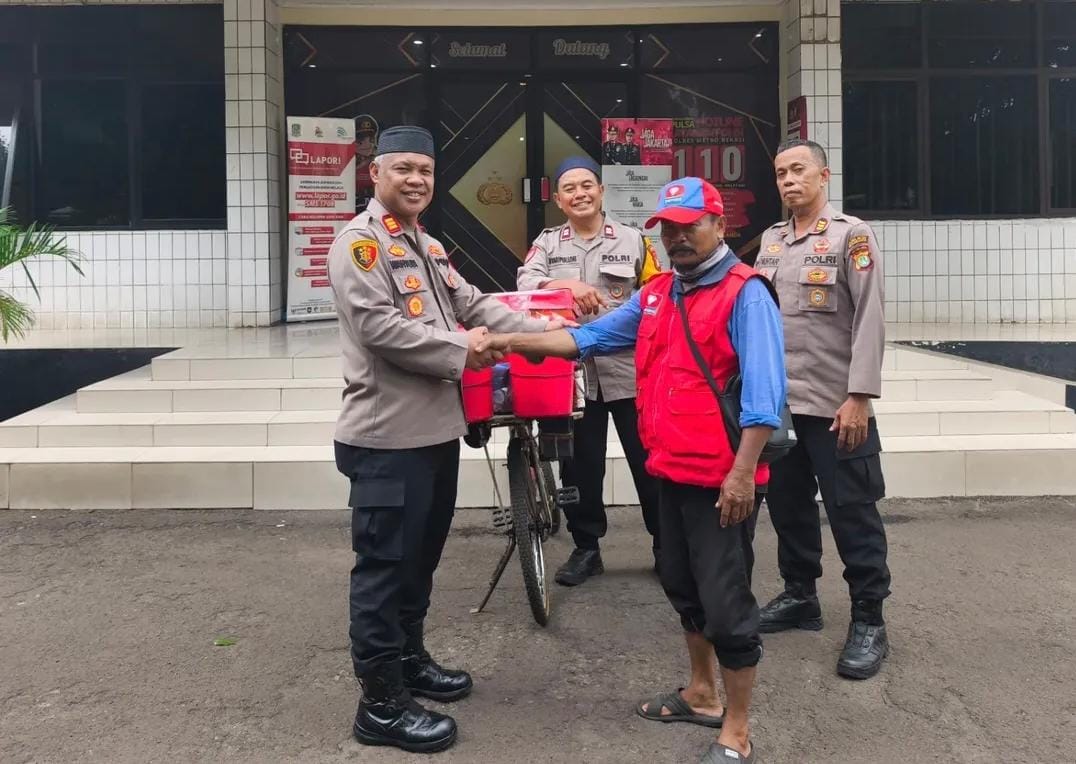 RADARBEKASI.ID, BEKASI – Polsek Bekasi Barat memberikan bantuan berupa penggantian kerugian kepada pedagang es krim keliling yang kehilangan sepeda beserta perlengkapan jualannya.