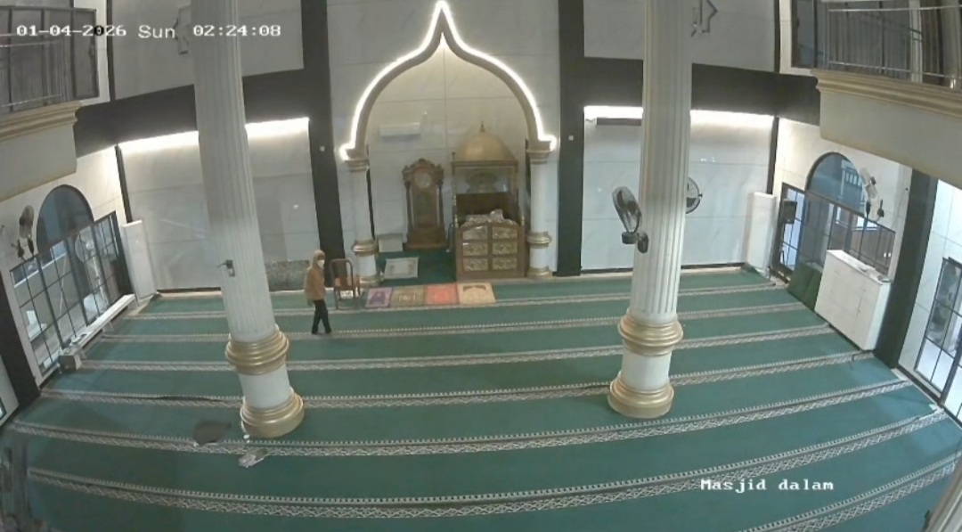 Dalam rekaman, pelaku terlihat beraksi seorang diri dengan santai, mengenakan hoodie dan celana panjang. Selain menggasak uang kotak amal, pelaku juga nyaris membawa kabur sejumlah perangkat pengeras suara masjid.