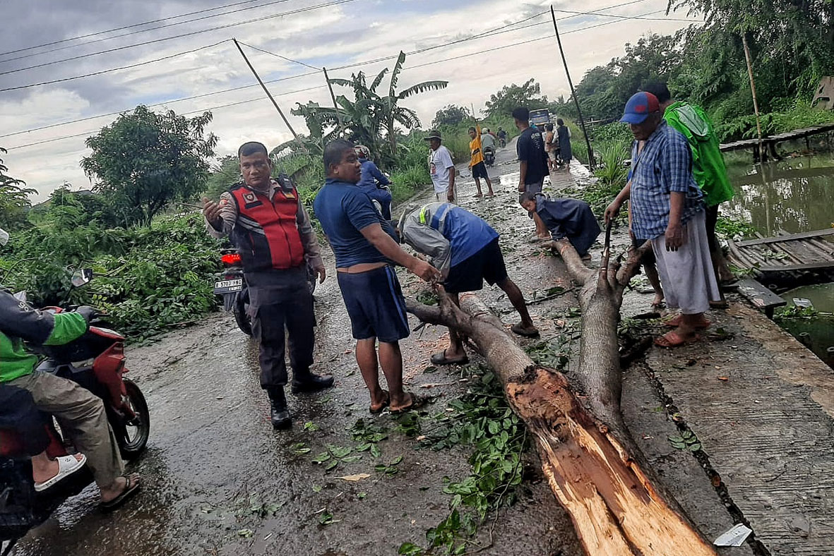 Batang pohon yang tumbang sempat menutup jalan, sehingga kendaraan roda dua maupun roda empat tidak bisa melintas. Kemacetan pun tak terhindarkan. Petugas kepolisian bersama warga langsung melakukan evakuasi dengan memotong-motong ranting pohon agar jalan kembali bisa dilalui.