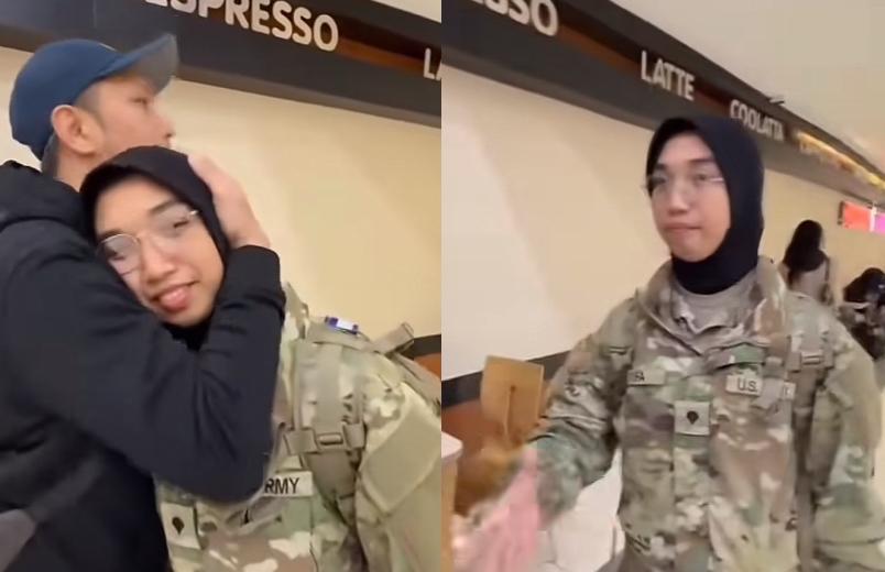 “Momen haru orangtua asal Indonesia mengantar anaknya ke bandara untuk menjalani tugas sebagai tentara Amerika jadi perhatian. Kezia Syifa resmi bergabung dengan Maryland Army National Guard sebagai MOS 92A sejak 2025,” tulis keterangan unggahan tersebut.