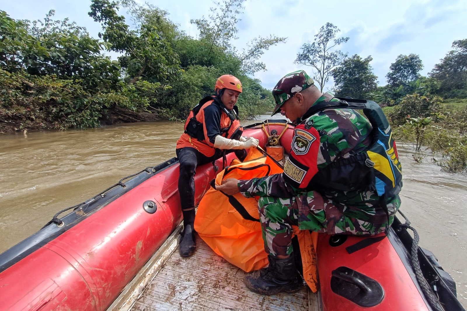 Tim SAR Gabungan mengerahkan puluhan personel yang dibagi ke beberapa unit. Pencarian dilakukan dengan menyisir aliran sungai menggunakan perahu karet sejauh 3 kilometer dari lokasi kejadian, serta pemantauan jalur darat sejauh dua kilometer.