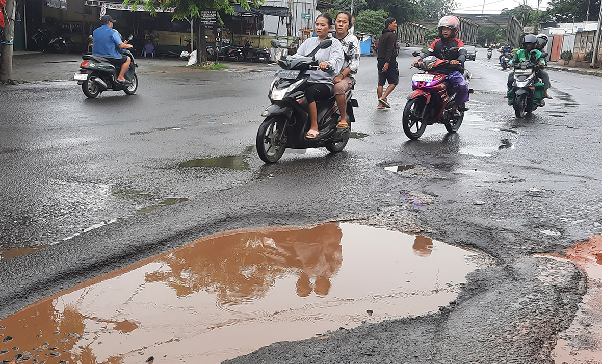 Kerusakan jalan tersebut diperparah oleh hujan deras yang mengguyur Kota Bekasi selama sepekan terakhir. Intensitas hujan yang tinggi menyebabkan aspal terkelupas, berlubang, dan tergenang air, sehingga berpotensi membahayakan pengguna jalan. (rez)