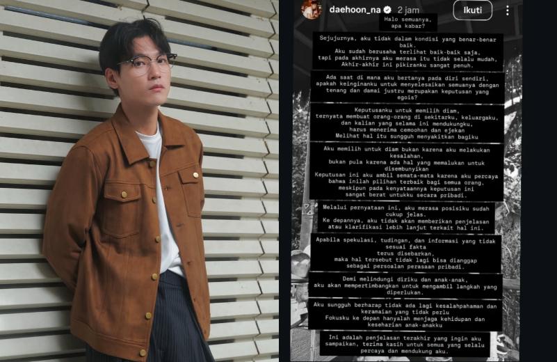 Demi melindungi diri sendiri dan anak-anaknya, Daehoon menyatakan akan mempertimbangkan langkah hukum atau tindakan yang diperlukan jika narasi negatif terhadapnya terus berlanjut di ruang publik.
