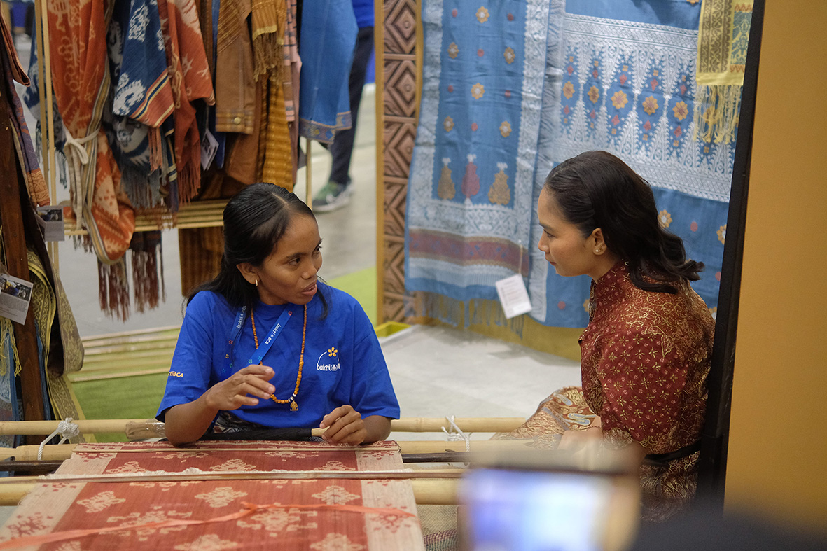 Usai disambut secara simbolis di booth Bakti BCA, Wamenpar Ni Luh Puspa langsung mengunjungi booth Wastra Warna Alam. Ia berbincang langsung dengan Diana Kalera Lena yang merupakan penenun asli Sumba. Diana memiliki peran penting dalam kolaborasi antara komunitas penenun di tempat tinggalnya dengan Bakti BCA. Ia merupakan penenun pertama dari komunitasnya yang bergabung dengan program pelatihan wastra warna alam, kemudian mengajak 13 orang dari desanya untuk turut serta program itu.