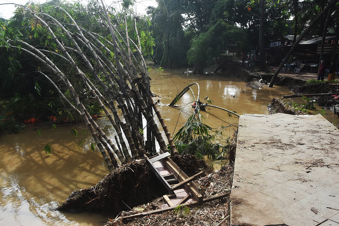 “Ada rumah warga yang separuh longsor. Seberangnya, area wisata hutan bambu juga banyak pohon yang roboh,” kata Sangga, Kamis (12/2).