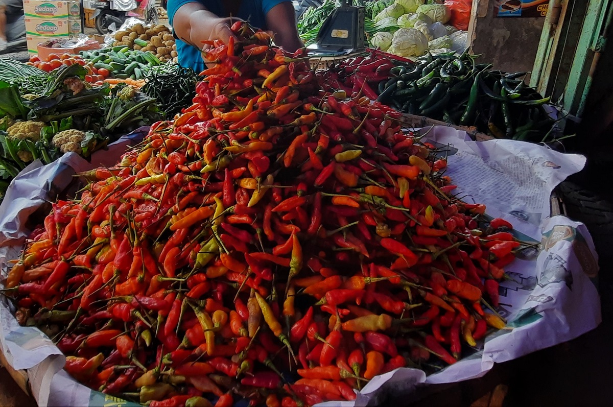 Bawang merah juga terdongkrak dari Rp46.250 menjadi Rp50 ribu per kilogram. Cabai merah besar naik dari Rp42.500 menjadi Rp48.750, sementara cabai merah keriting dari Rp47.500 menjadi Rp50 ribu. Cabai rawit tercatat Rp100 ribu dari Rp95 ribu pada 12 Februari, sedangkan cabai rawit hijau justru turun tipis dari Rp57.500 menjadi Rp55 ribu.