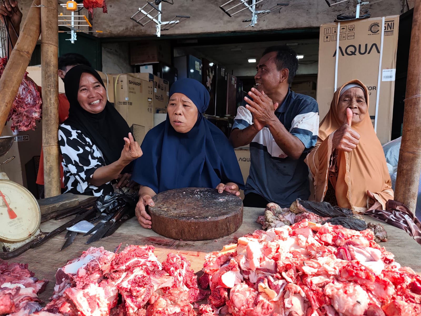 Berdasarkan pantauan, sekitar 10 hingga 15 penjual daging ramai dikunjungi masyarakat menjelang persiapan lebaran.