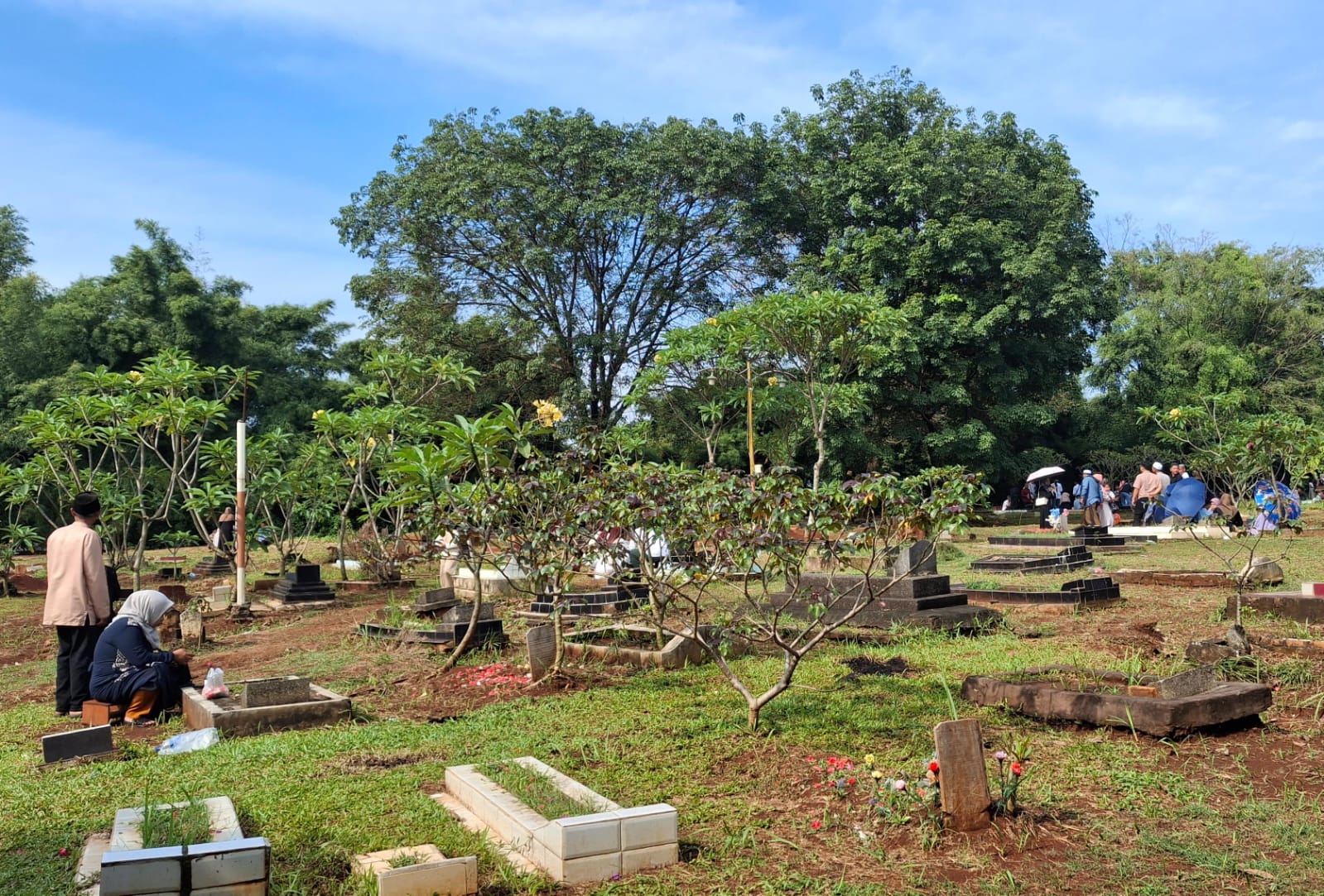 Berdasarkan pantauan, Minggu (22/3), pengunjung mulai berdatangan menjelang siang. Mereka membawa bunga dan air, lalu berdoa di pusara keluarga. Sejumlah peziarah tampak duduk bersila di atas makam serta membaca doa secara khusyuk.