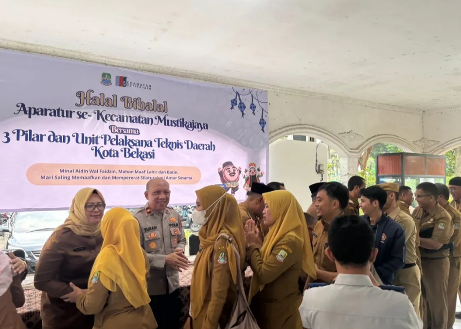 Camat Mustikajaya, Maka Nachrowi, menegaskan halal bihalal bukan sekadar tradisi saling memaafkan, tetapi juga momentum strategis memperkuat koordinasi antarinstansi.
