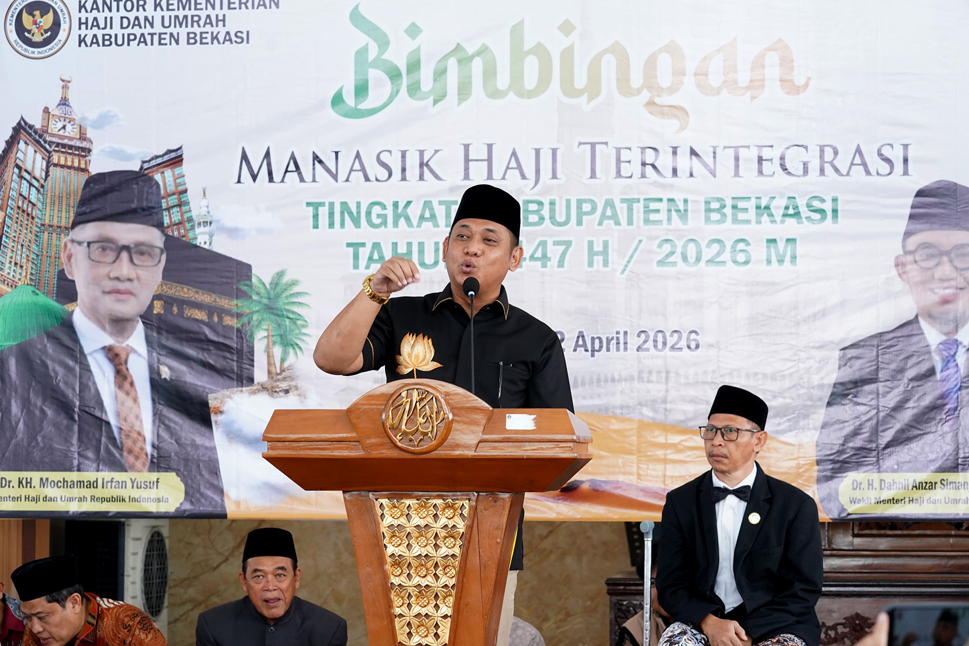 Ia juga berpesan agar para jemaah dapat menjaga nama baik daerah selama menjalankan ibadah haji, dengan menunjukkan sikap disiplin, tertib, serta saling tolong-menolong antar sesama jamaah. Melalui kegiatan manasik haji ini, diharapkan seluruh calon jemaah haji Kabupaten Bekasi dapat melaksanakan ibadah dengan lancar, khusyuk, serta kembali ke tanah air dengan predikat haji yang mabrur dan mabruroh.
