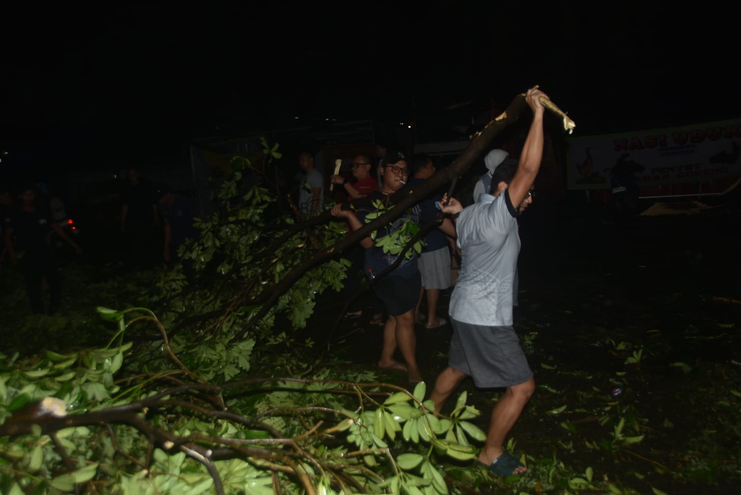 “Tadi sempat nutup jalan, jadi yang dari arah jalan raya nggak bisa lewat. Tapi nggak lama karena warga langsung gotong royong bersihin,” tambahnya.