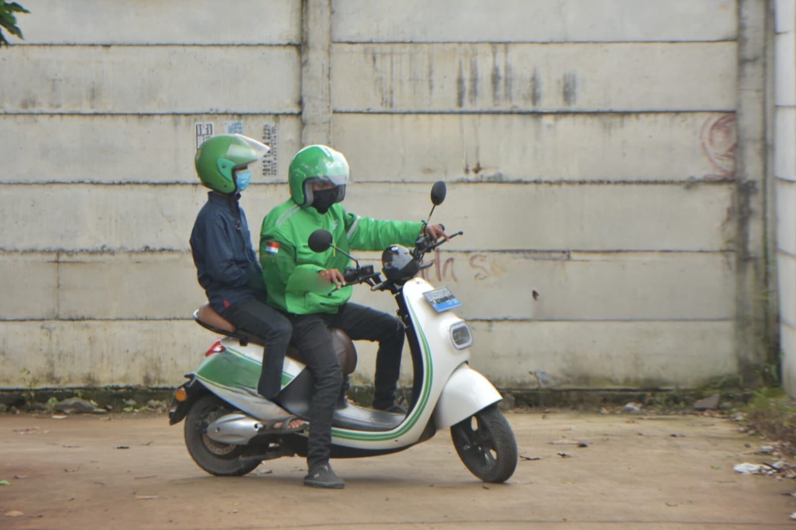 Pengemudi ojek daring mengantarkan penumpang. BPJS Ketenagakerjaan memberikan diskon iuran 50 persen program JKK dan JKM bagi peserta BPU seperti pengemudi ojek. FOTO: ARIESANT/RADAR BEKASI