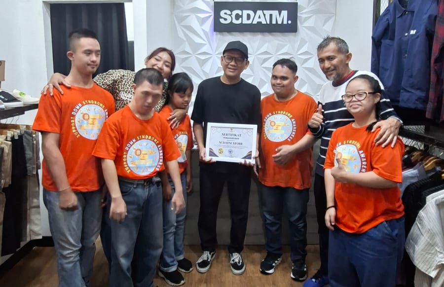 Siang itu, suasana di sebuah toko fashion lokal Suicide Anthem (SCDATM) di kawasan Perumahan Galaxy, Bekasi Selatan, tampak berbeda. Di antara rak pakaian yang tertata rapi dan lalu-lalang pengunjung, terlihat sejumlah anak dengan Down syndrome sibuk beraktivitas.