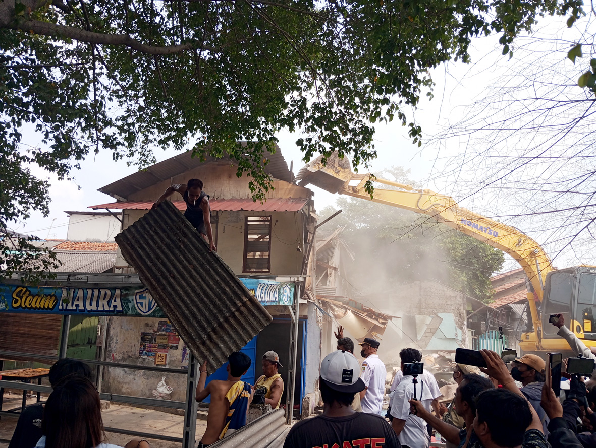 Penertiban dilakukan Rabu (22/4) di RT 03, 05, 06, dan 10 RW 02. Sebagian bangunan sudah kosong, namun sejumlah warga masih berkemas, menyelamatkan barang dan material yang tersisa.