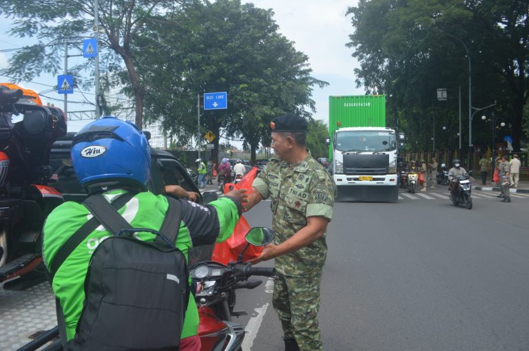 RADARBEKASI.ID, BEKASI Di bawah terik matahari yang menyengat, sejumlah prajurit TNI turun ke Jalan Ir. Juanda untuk membagi makan siang gratis. Program Jumat Berkah yang digelar Subkogartap 0507 Kota Bekasi, pekan lalu(17/4, langsung menyasar pengemudi ojek online, sopir angkot, hingga pejalan kaki.