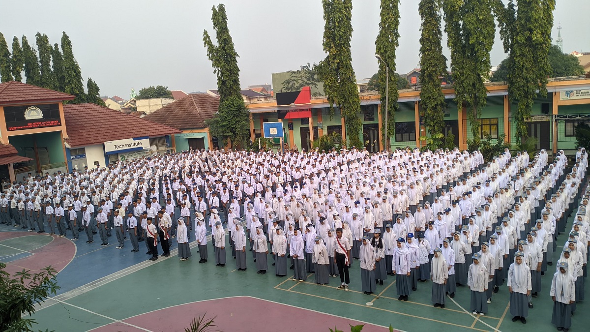 ILUSTRASI: Sejumlah siswa SMKN 11 Kota Bekasi saat mengikuti upacara di sekolah. FOTO: ISTIMEWA