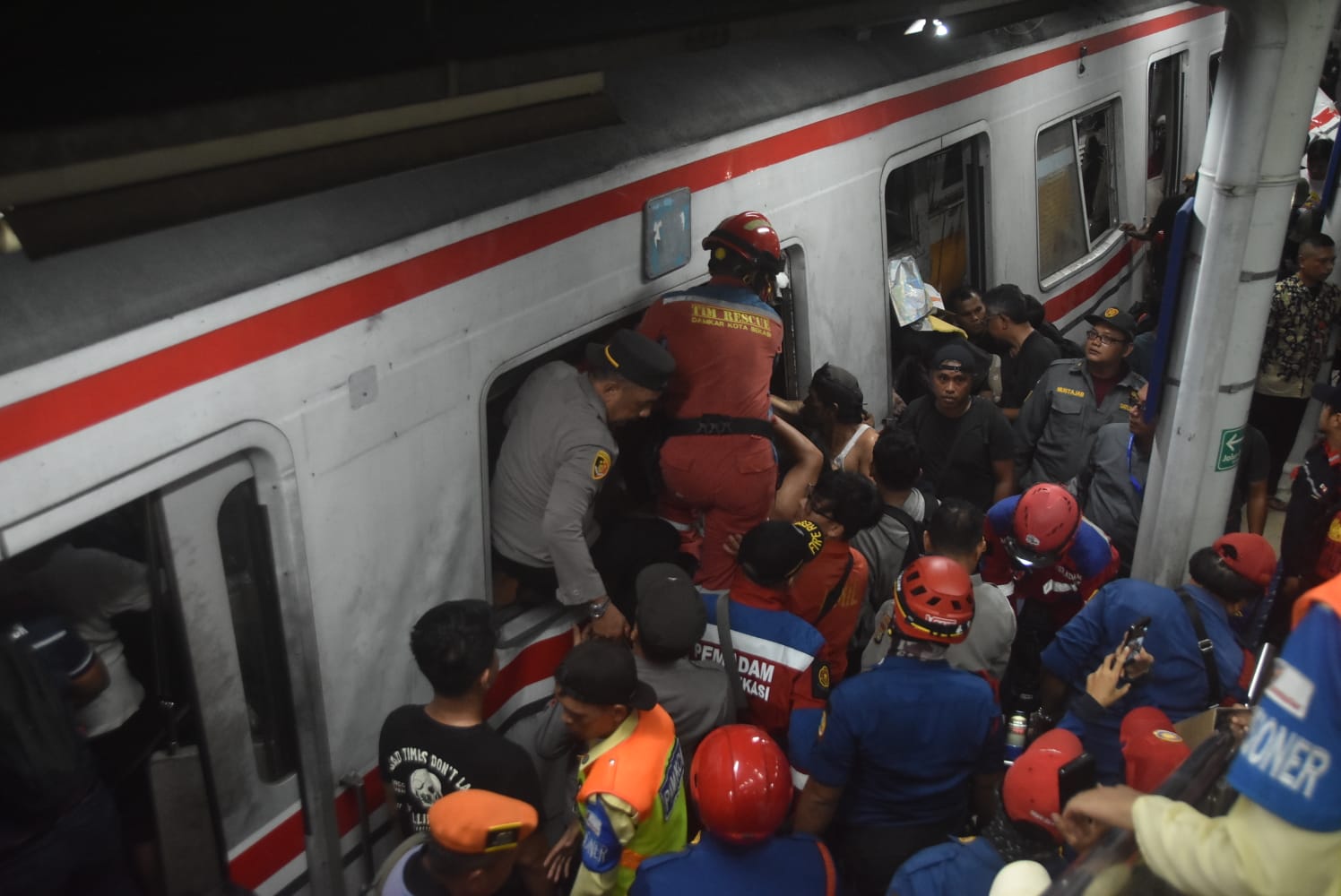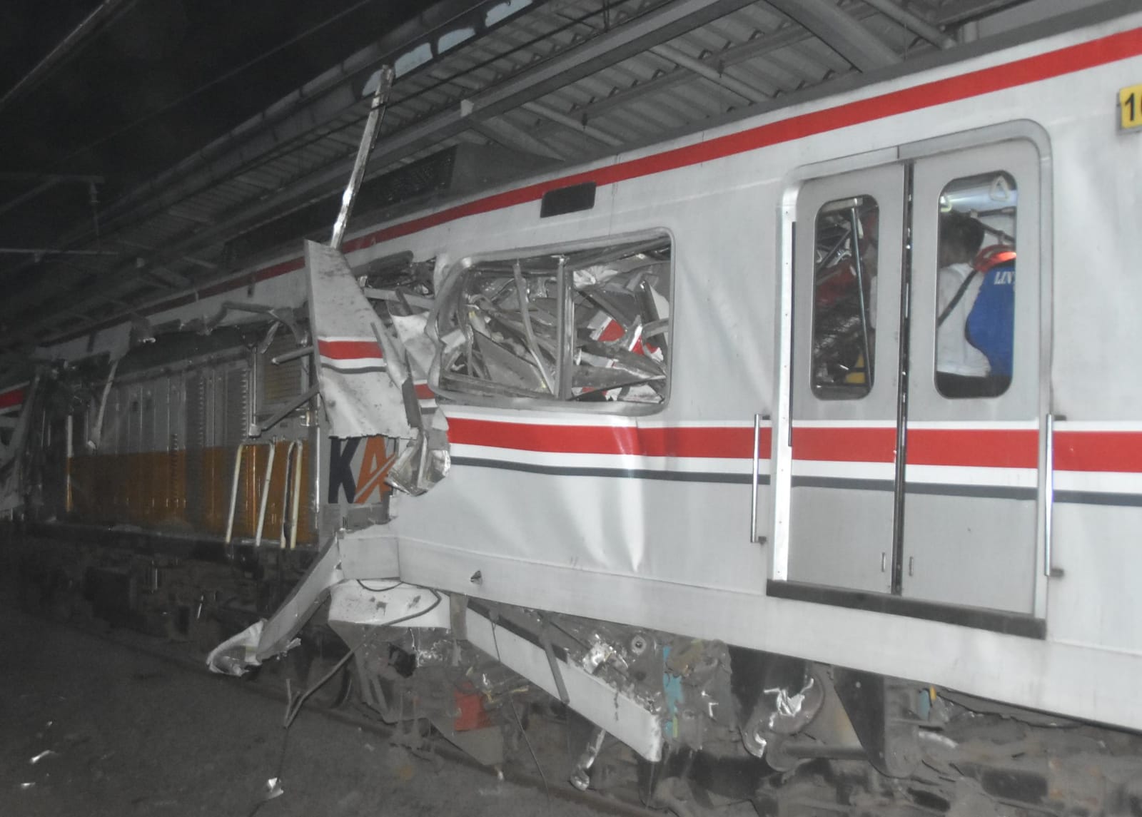 Berdasarkan pantauan di lokasi, gerbong khusus wanita di bagian belakang rangkaian mengalami kerusakan parah. Tim SAR gabungan melakukan evakuasi terhadap penumpang yang terjepit di dalam gerbong.