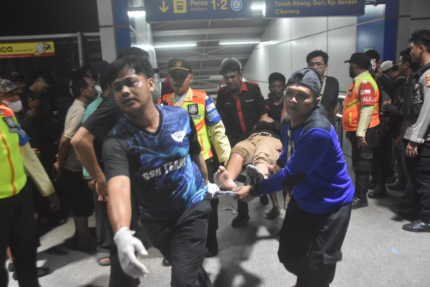 Sejumlah petugas membawa penumpang menuju ambulans untuk dibawa ke rumah sakit usai KRL Commuter Line relasi Cikarang yang ditumpanginya ditabrak KA Argo Bromo Anggrek di Stasiun Bekasi Timur, Senin (27/4) malam. FOTO: RAIZA SEPTIANTO/RADAR BEKASIPetugas KAI melihat kondisi gerbong rusak usai KRL Commuter Line relasi Cikarang ditabrak KA Argo Bromo Anggrek di Stasiun Bekasi Timur, Senin (27/4) malam. FOTO: RAIZA SEPTIANTO/RADAR BEKASIPenumpang lemas usai KRL Commuter Line relasi Cikarang yang ditumpanginya ditabrak KA Argo Bromo Anggrek di Stasiun Bekasi Timur, Senin (27/4) malam. FOTO: RAIZA SEPTIANTO/RADAR BEKASI